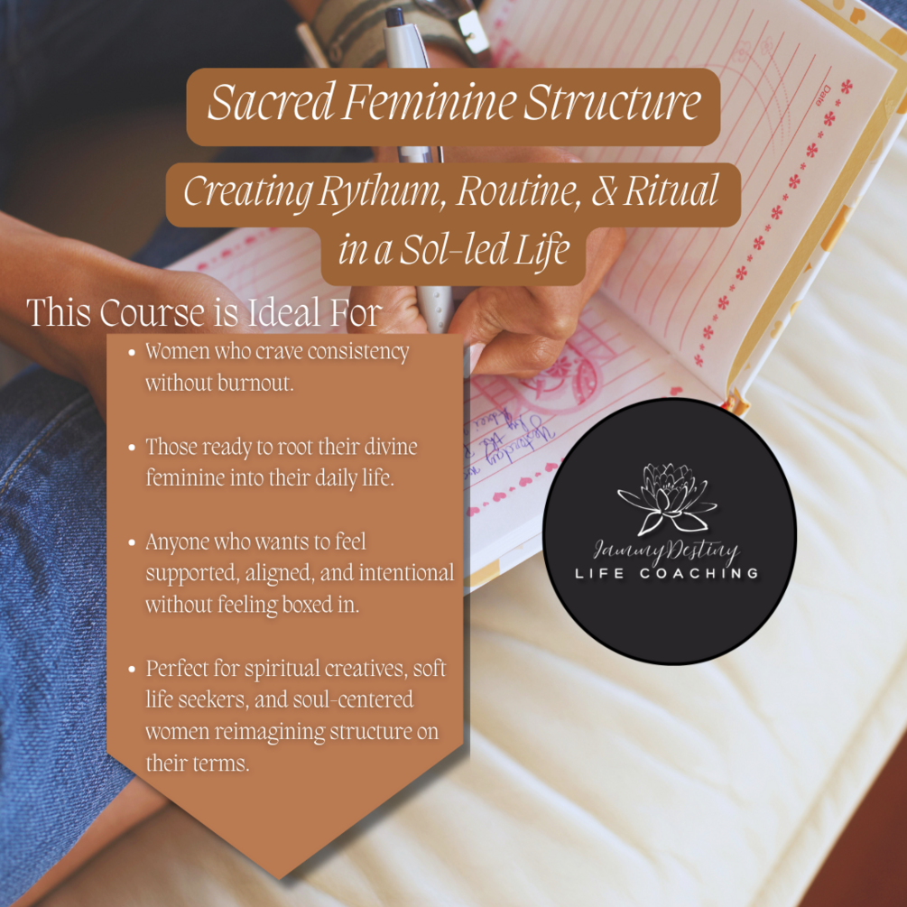 This course is about aligning your life with your feminine energy through sacred structure. It teaches how to create gentle, supportive routines and rituals that reflect your inner peace, power, and intention. You’ll learn how to live your days with rhythm rather than rigidity, infusing your mornings, planning, and self-care with meaning and soul.